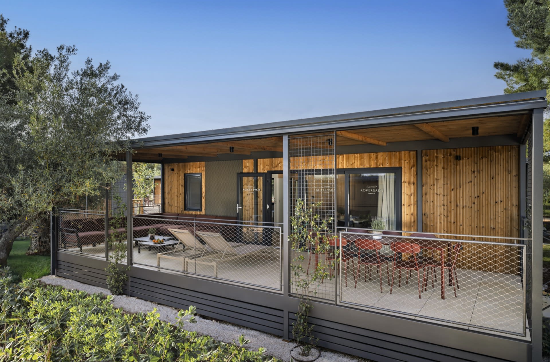 Domki Premium Family mają trzy sypialnie i dwie łazienki, są więc idealne dla większych rodzin. W pełni wyposażona kuchnia, telewizor i zadaszony taras pozwolą nacieszyć się komfortem, ale i bliskością przyrody.