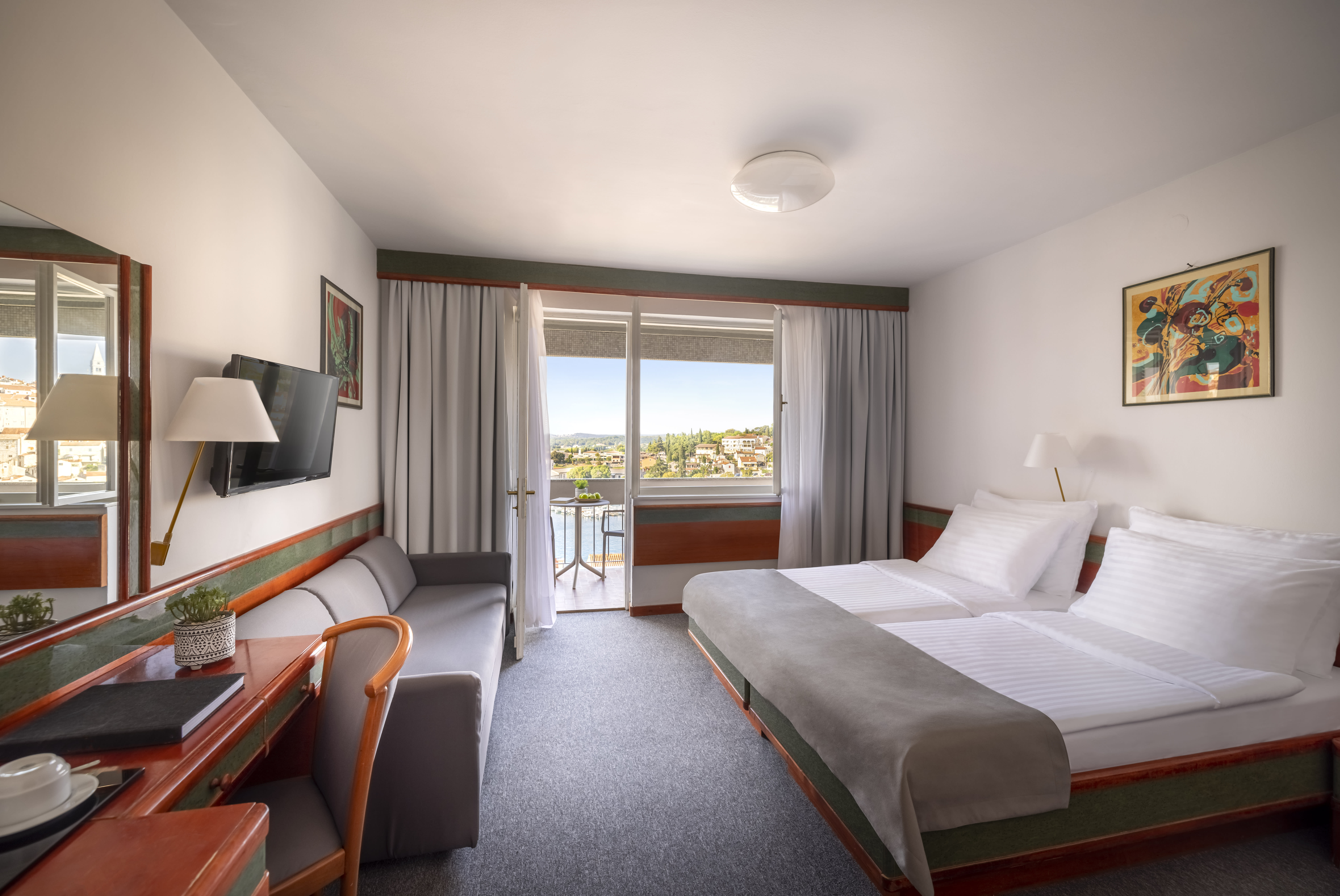 From the private balcony, you can enjoy spectacular views of the sea and Vrsar. These comfortable rooms are ideal for up to three people.